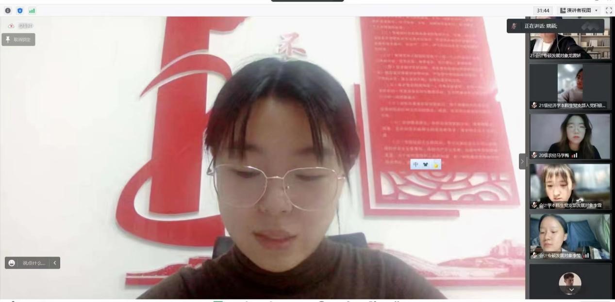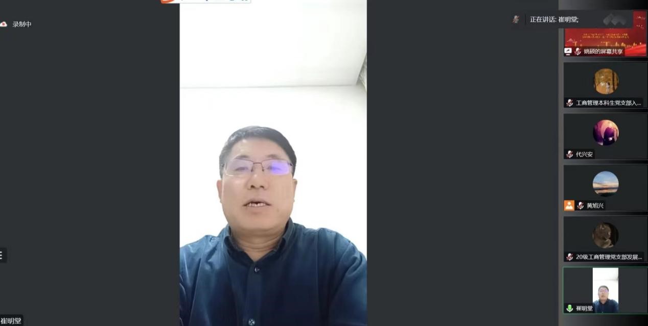 10月31日晚,91自拍 (西部发展研究院)分党校第四十期入党积极分子暨第十六期发展对象开班仪式在线上顺利举行。91自拍 专职组织员代兴安,91自拍 (西部发展研究院)党委书记崔明堂,党委副书记黄旭兴,会计专业硕士研究生党支部书记李文佳,学术型研究生党支部书记郭飞,经济学本科生党支部书记马静,工商管理本科生党支部书记代乾,农林经济管理本科生党支部书记于艳丽,会计学本科生党支部书记孙文元,学院党建秘书姚硕,91自拍 第四十期入党积极分子以及91自拍 第十六期发展对象参加会议。会议由黄旭兴主持。