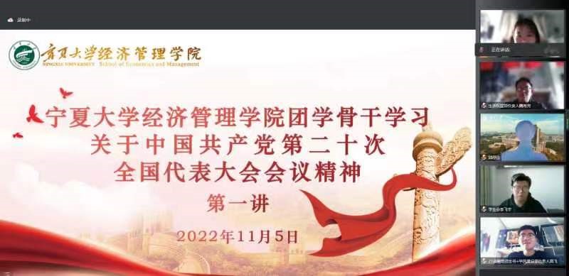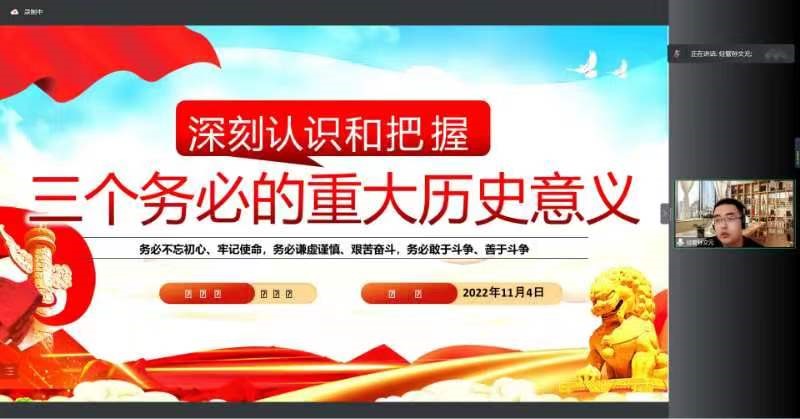 11月5日下午,91自拍 团学骨干学习中国共产党第二十次全国代表大会会议精神第一讲于线上顺利开展。91自拍 团委副书记孙文元、第十九届一期学生会全体成员及各年级班长、团支书参加学习。本次学习由孙文元主讲。