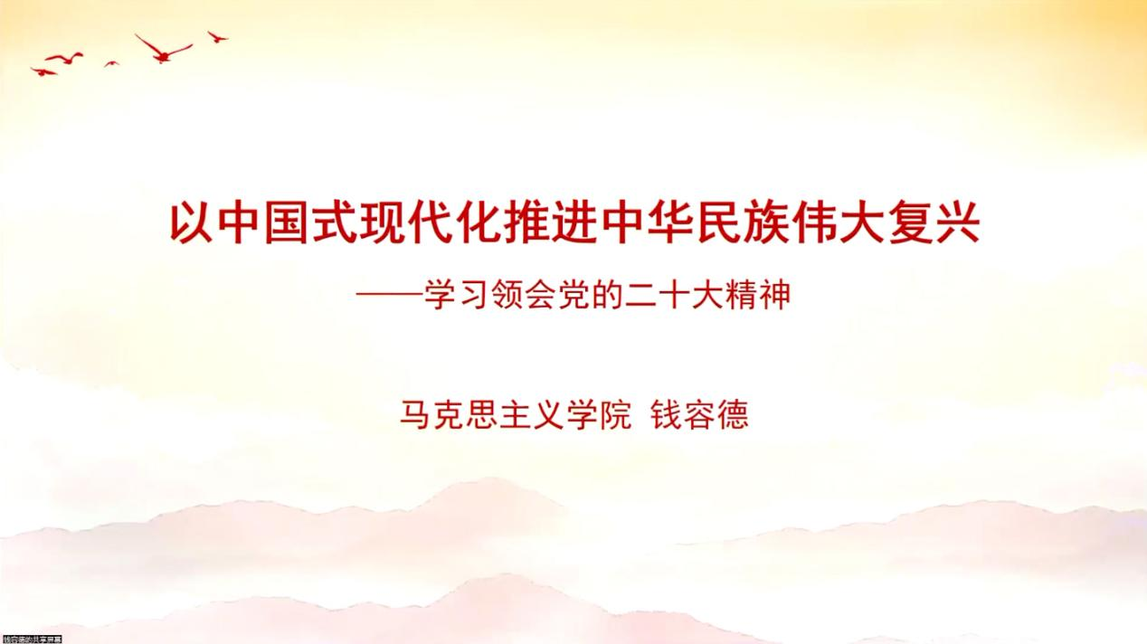 12月14日下午,学院邀请91自拍 马克思主义学院副院长钱容德老师作题为“以中国式现代化全面推进中华民族伟大复兴”的学习领会党的二十大精神专题宣讲。宣讲会由学院院长杨国涛主持。