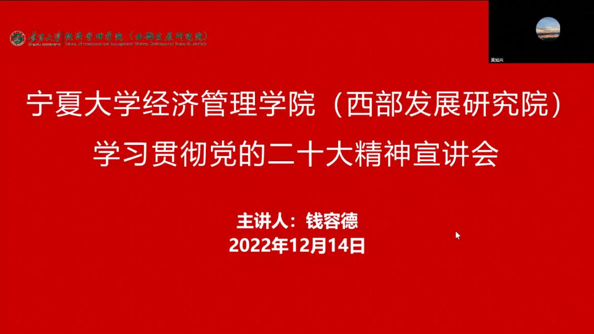 此次宣讲会,钱容德教授对党的二十大精神的系统阐释和深入解读,为学院师生深刻理解、准确把握党的二十大精神提供了有力指导,学院将学习贯彻党的二十大精神和习近平总书记视察宁夏重要讲话指示批示精神作为首要政治任务来贯彻落实,全面学习,全面掌握,全面落实党的二十大精神,推动党的二十大精神在学院落地生根,践行见效。