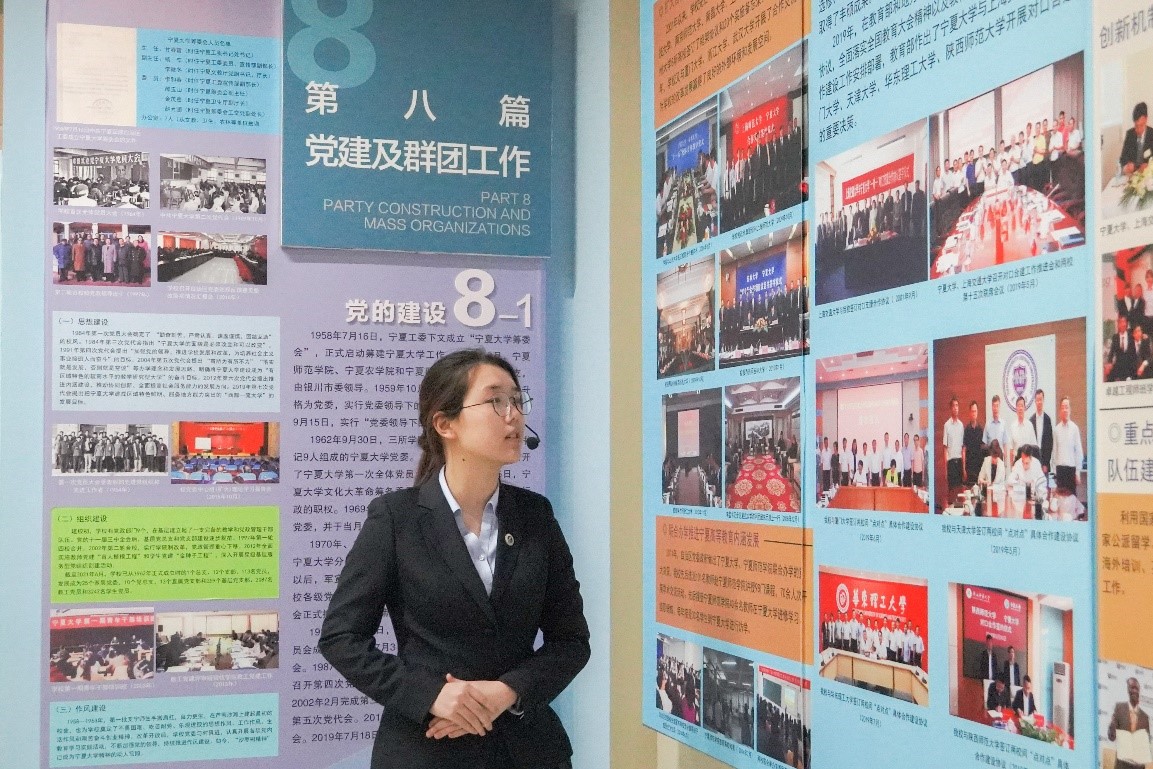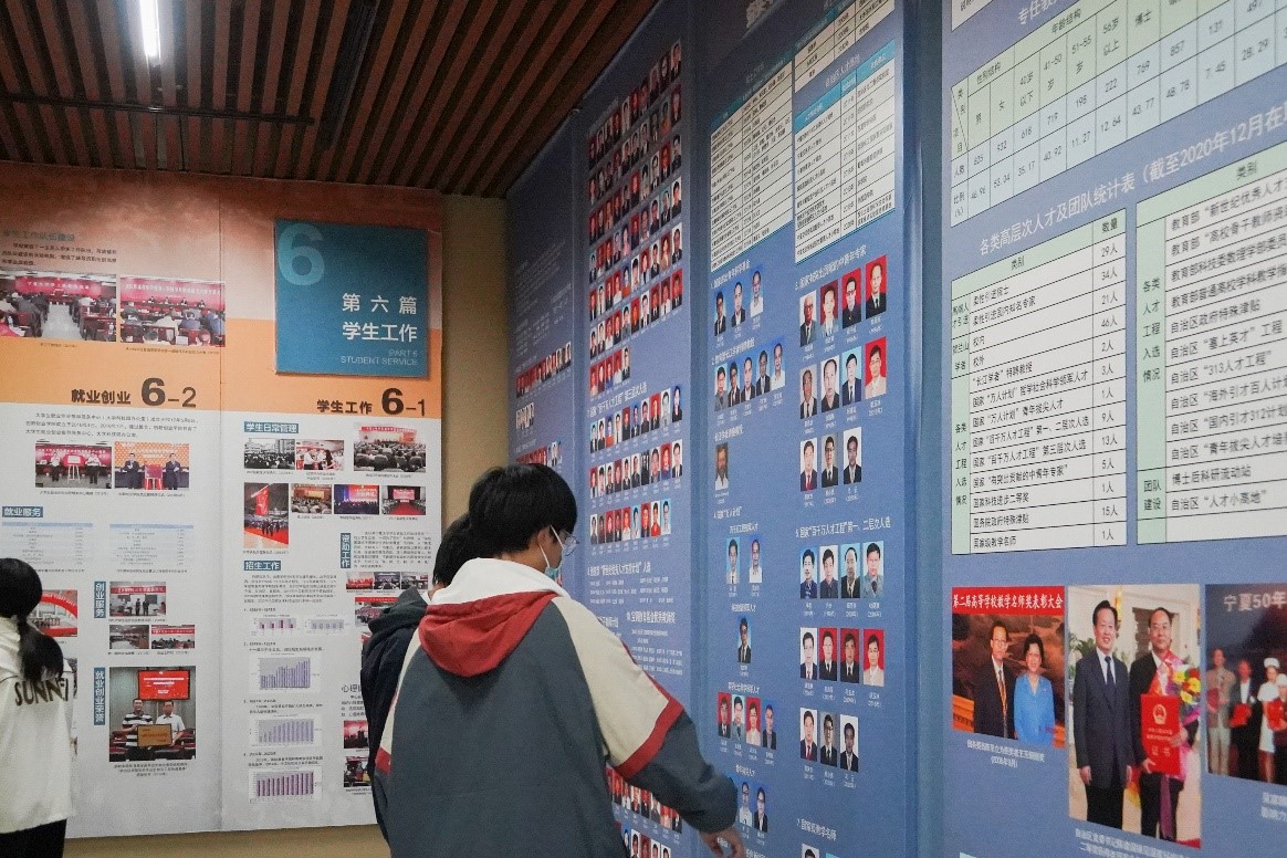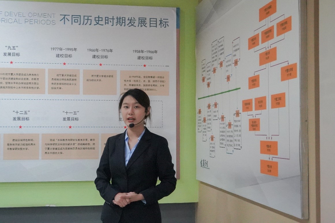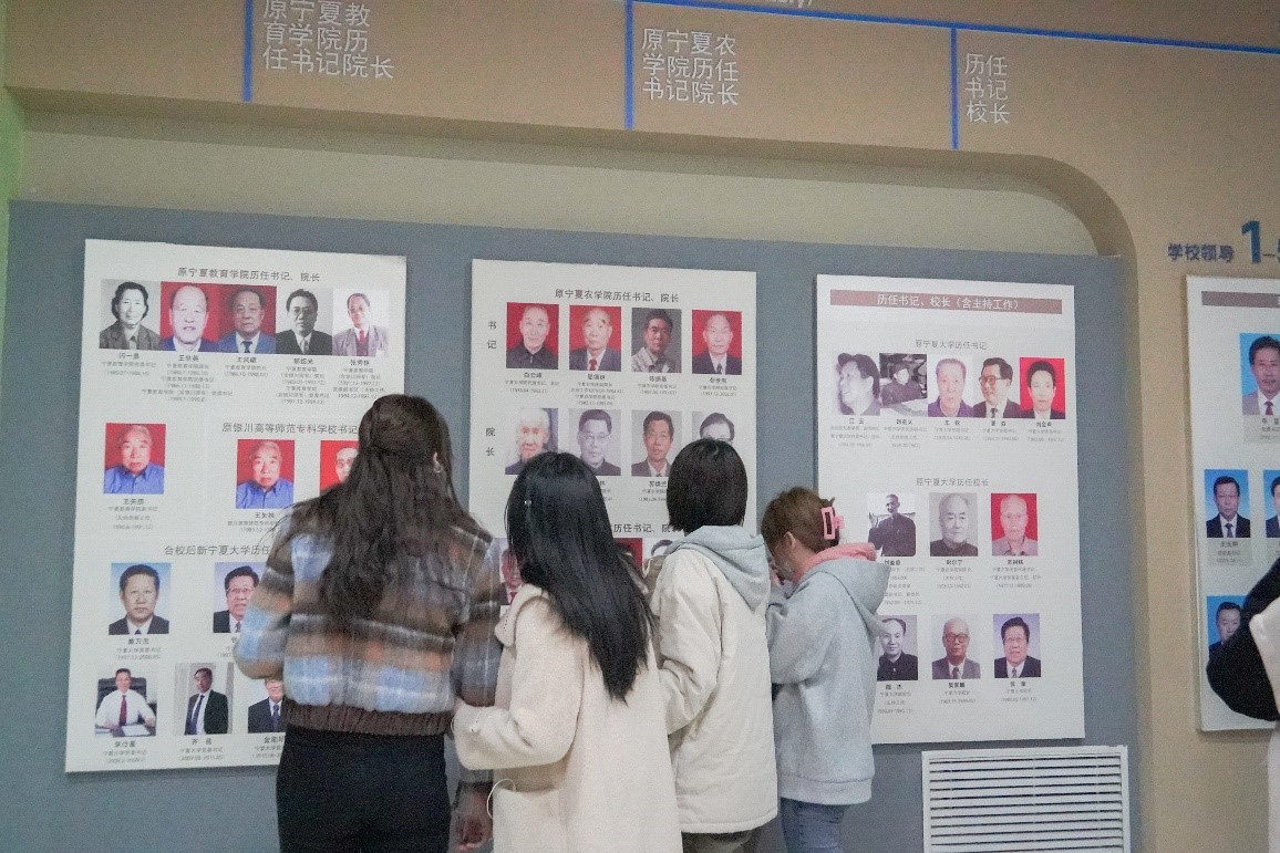 讲解员先是帮助同学们重温了我校的历史沿革,从校徽、校训、校歌等角度介绍着我校的建校初心与昔日征程,六十余年的发展也无不展示了一代又一代宁大人对“尚德、勤学、求是、创新”的追求与实践。
