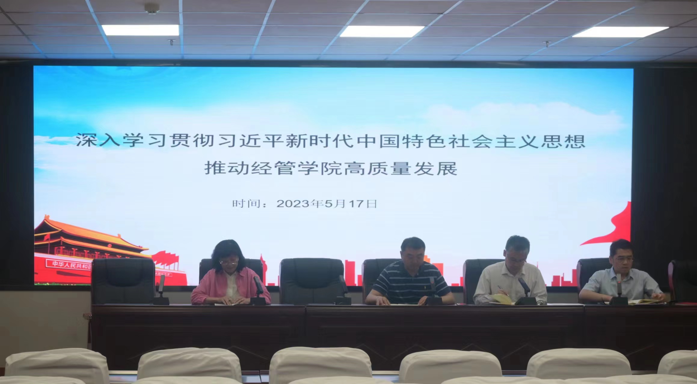 随后赵军作了题为《深入学习贯彻习近平新时代中国特色社会主义思想 推动经管学院高质量发展》主题教育专题党课,号召全体教职工学习贯彻党的二十大精神,推动学院高质量发展。